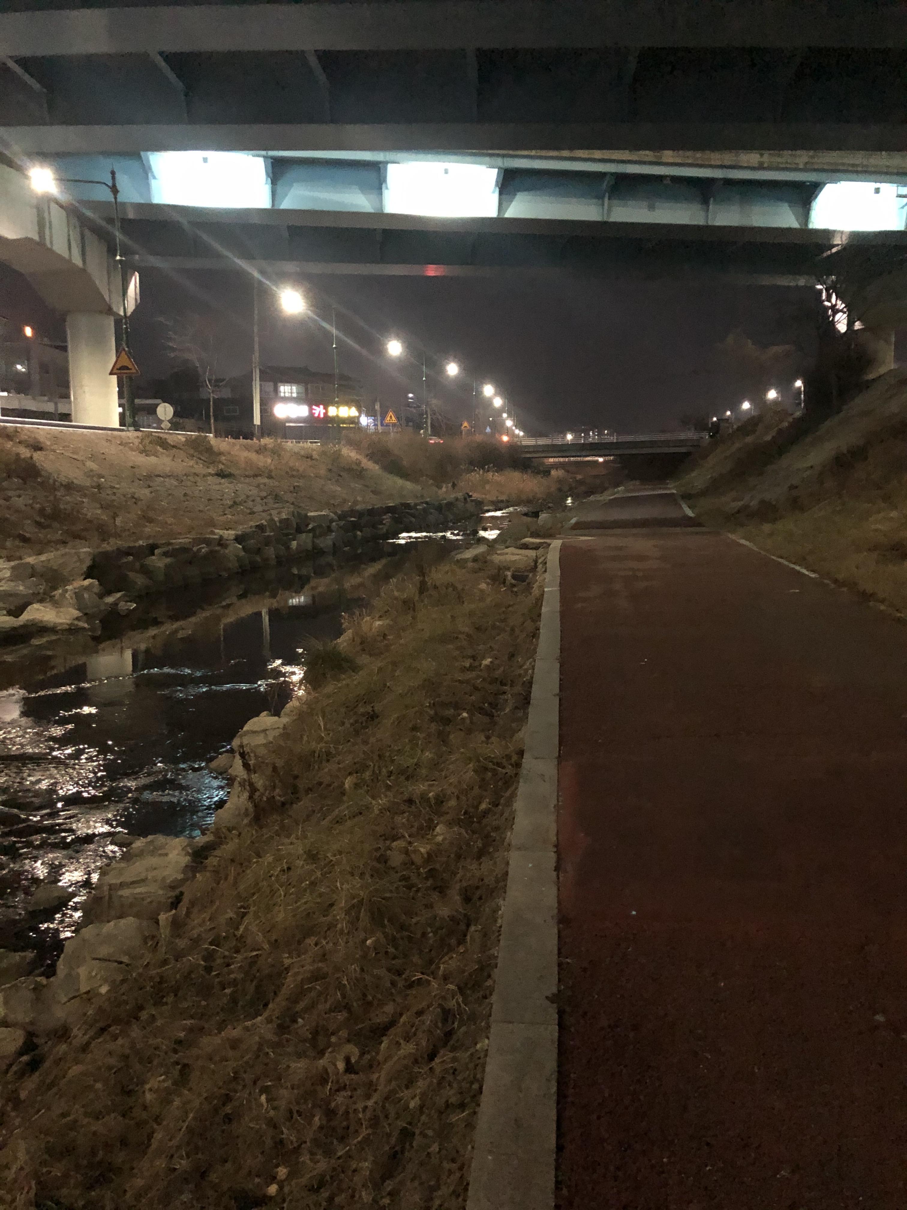 집앞의 도로 집에서 바로 나오면 앞에 천안천 산책로가 이어져 있어요.