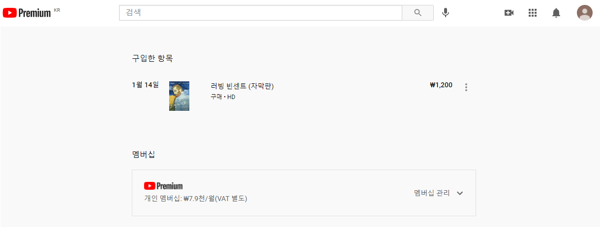 오늘은 영화를 보기로 마음을 먹었기때문에 유튜브영화로 러빙 빈센트를 구매해버렸습니다.