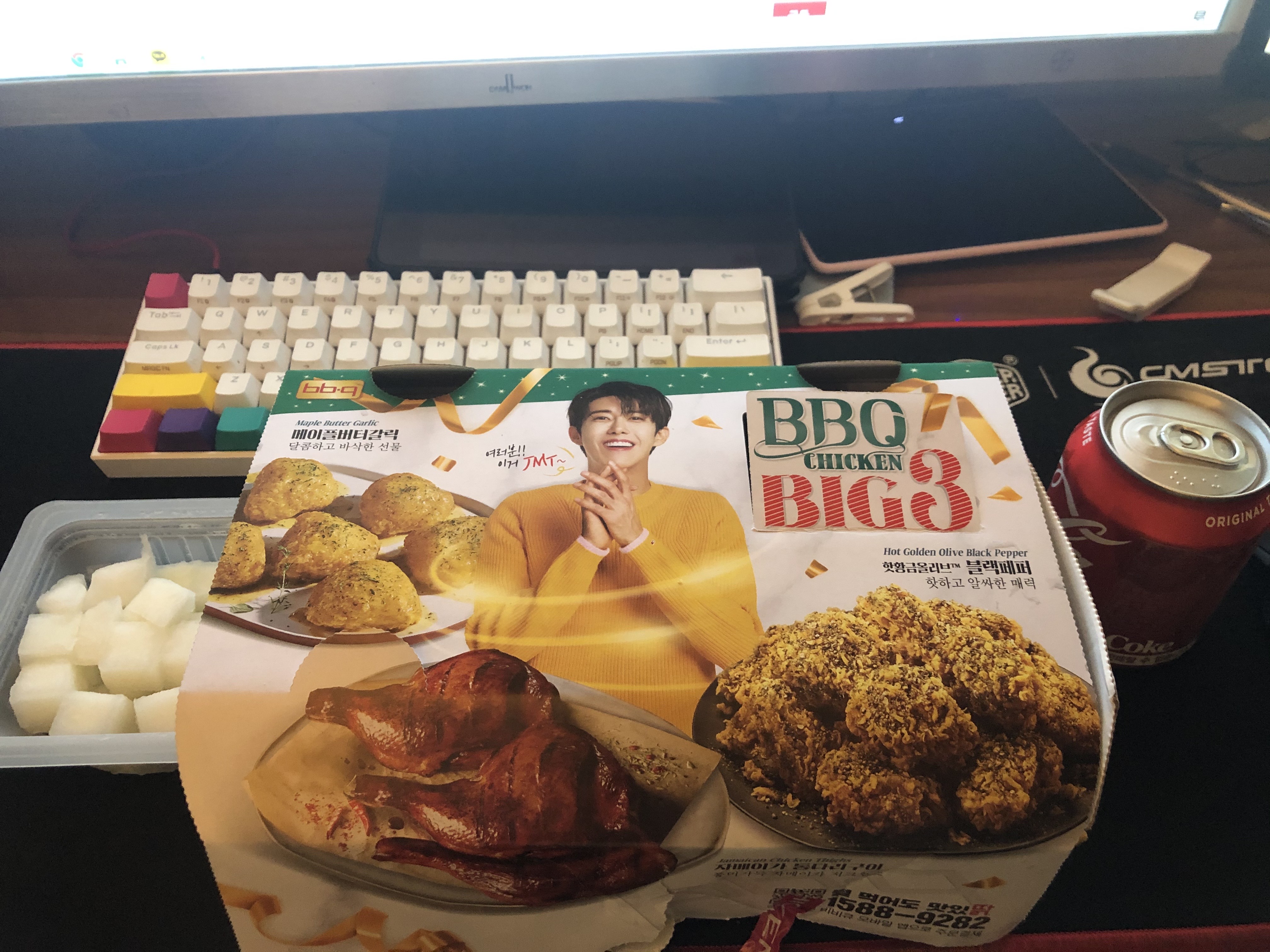 치킨을 시켰습니다. 유튜브에서 닭요리의 역사에 관련된 영상을 보다보니.. 오랜만에 정말 먹고싶더라구요.