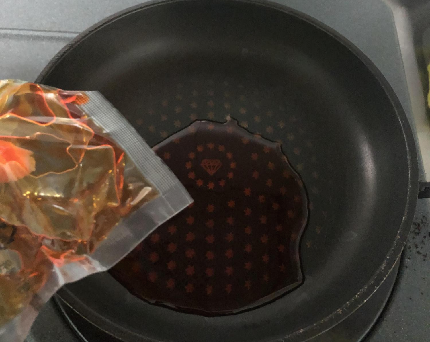 포장지 전면..?? 1. 첫번째로는 일단 동봉된 고추기름을 팬에 두르고~